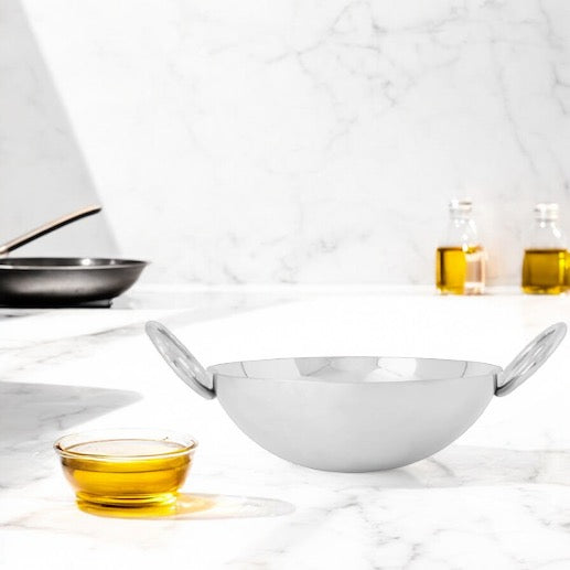 This kadai is perfect for everyday cooking. Its deep and wide shape makes it ideal for frying, sauteing, and preparing curries for my family. The steel is of premium quality and doesn’t warp even with high heat. I love how the handles are securely attached and don’t get too hot, making it easy to handle. What stands out is how easy it is to clean—just a quick wash, and it’s spotless. A great product for anyone who values durability and elegance in their cookware.