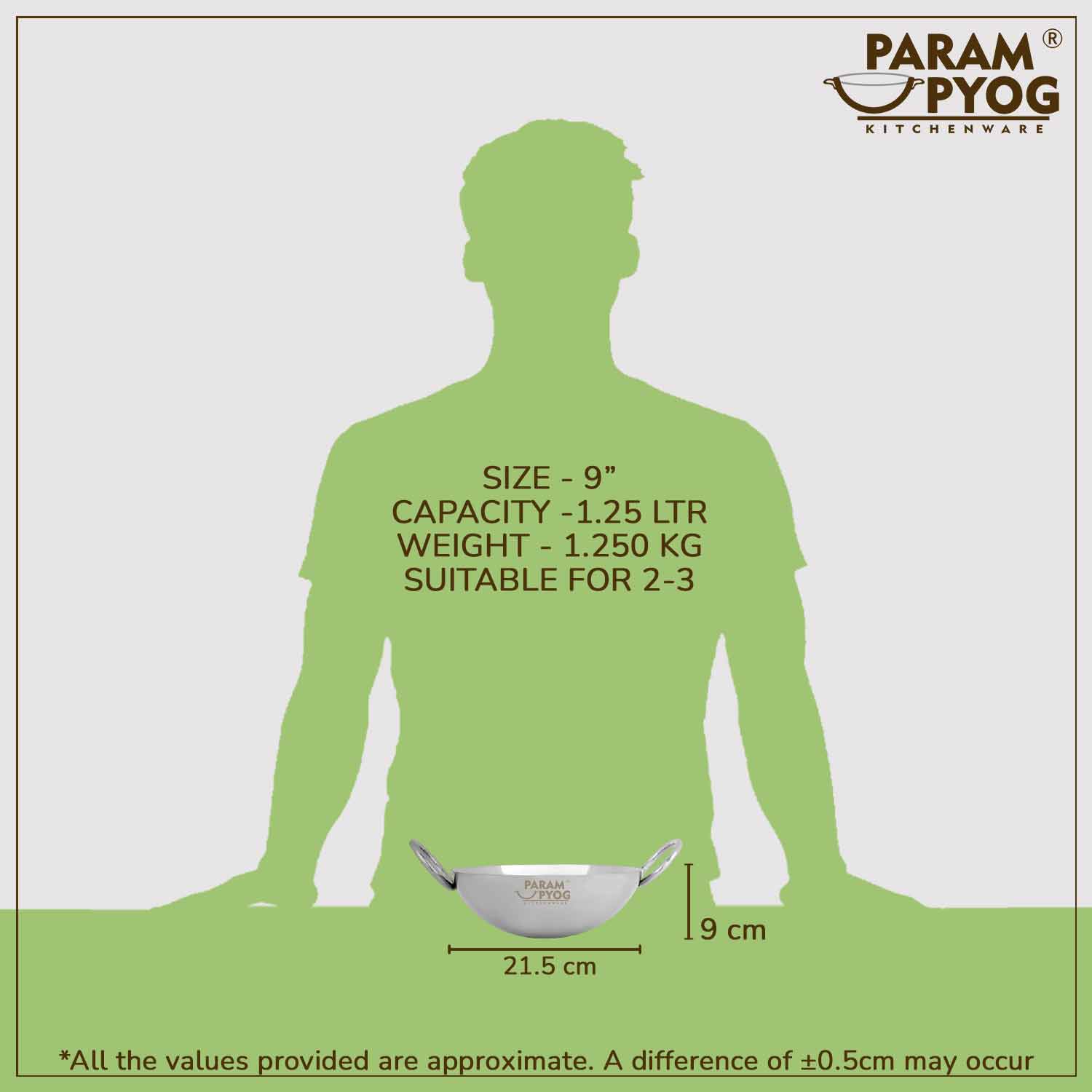 പരം ഉപ്യോഗ് സ്റ്റെയിൻലെസ്സ് സ്റ്റീൽ ഡീപ് കഡായി 1.25 ലിറ്റർ - 9"