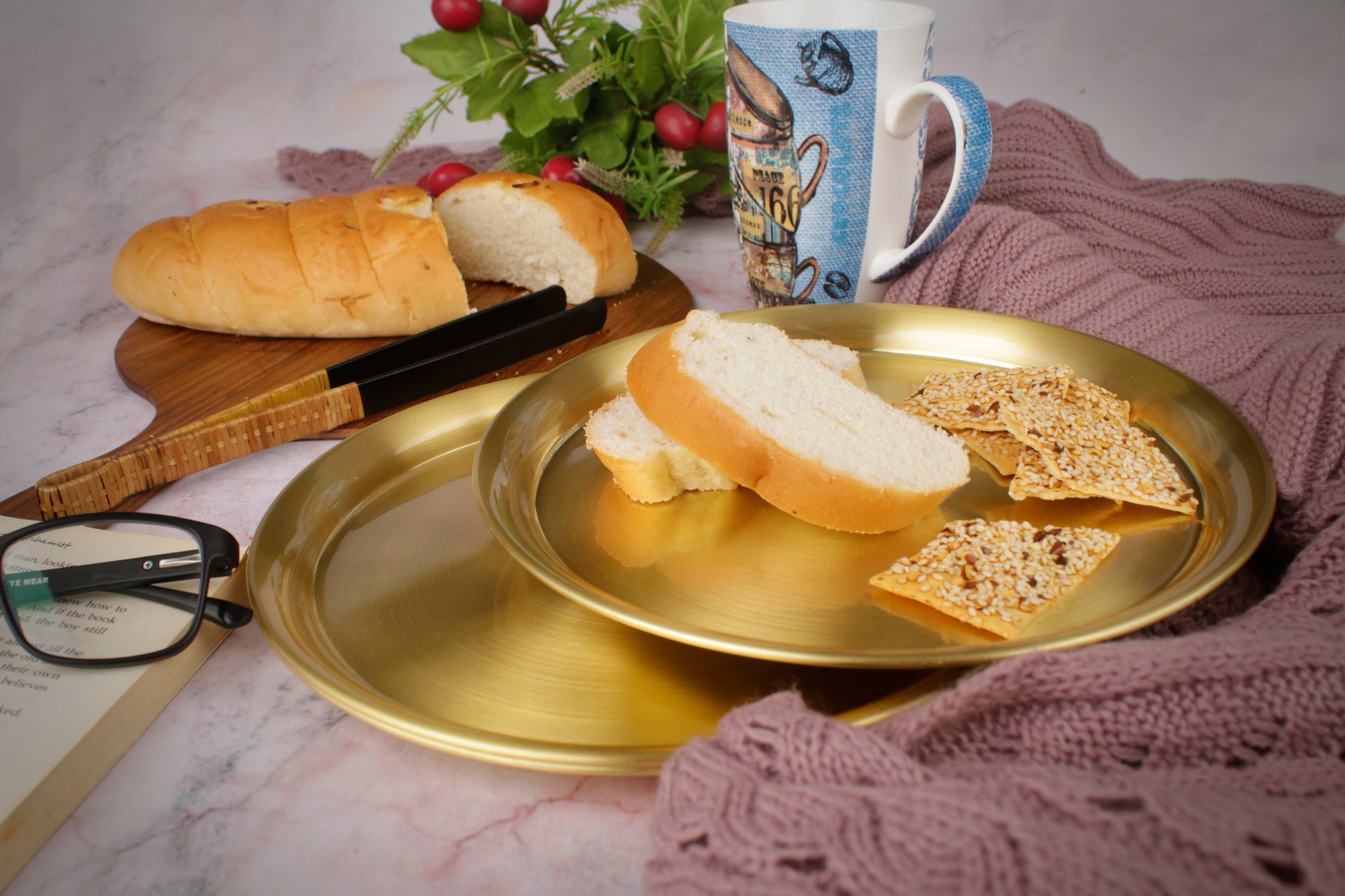 പരംപരാഗത് ഉപയോഗിത സ്വർണ്ണ ദേവയാനി 9" പിച്ചള സ്നാക്സ് പ്ലേറ്റുകൾ