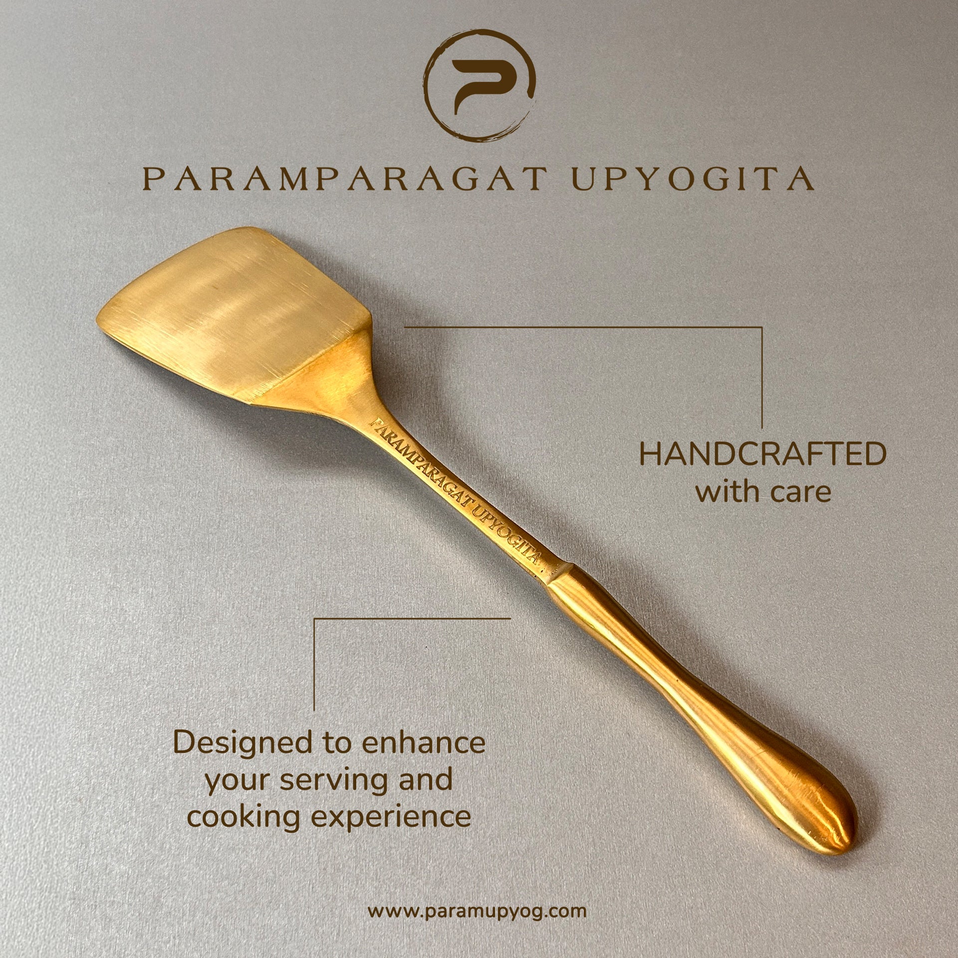 Bring traditional elegance to your kitchen with the Param Upyogita Brass Angled Turner. Handcrafted from virgin brass, this 100% lead-free turner is packed with health benefits while being strong and durable.