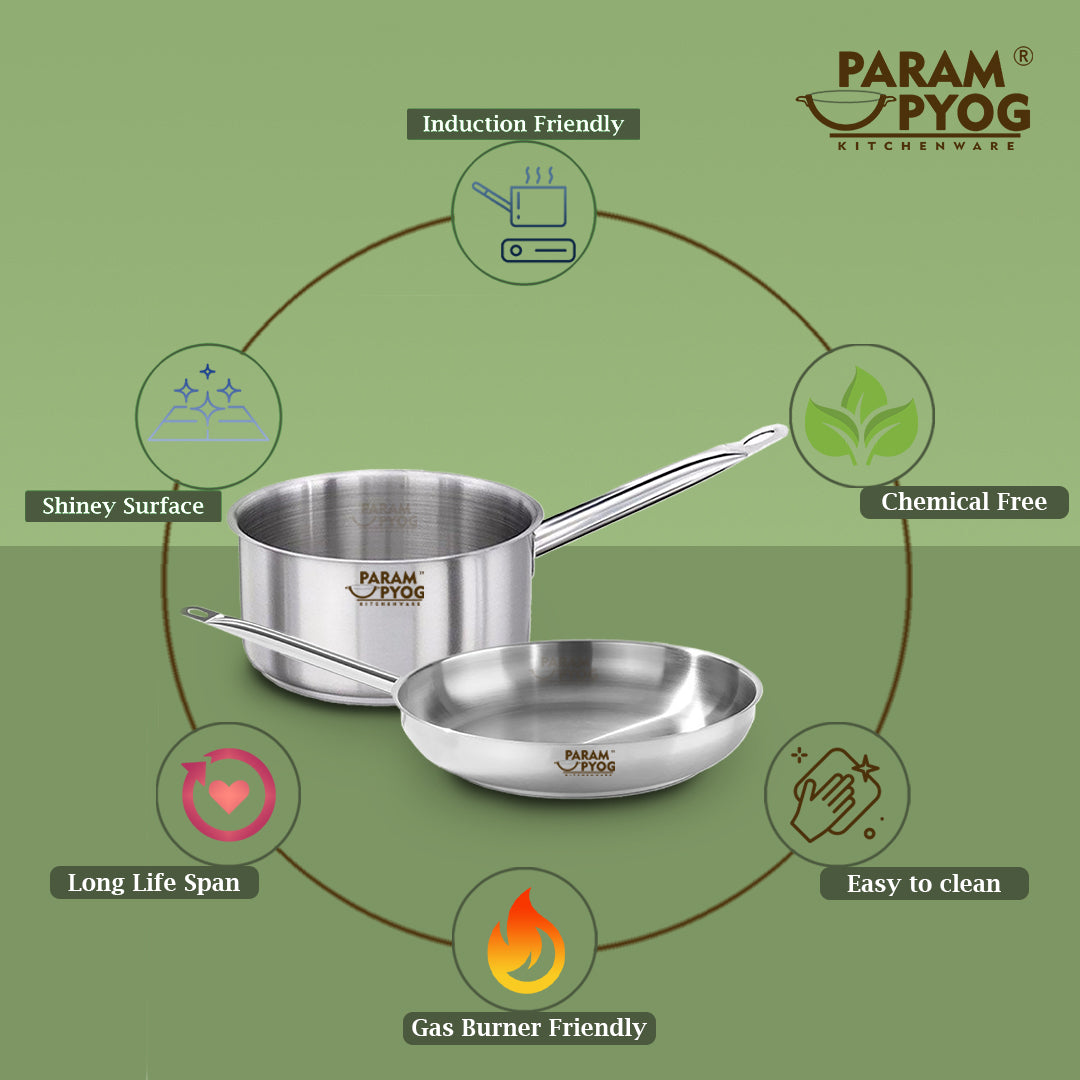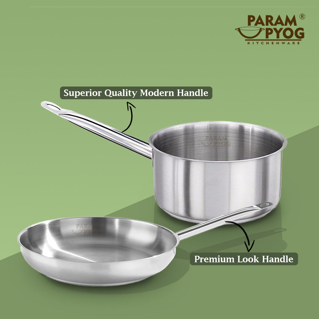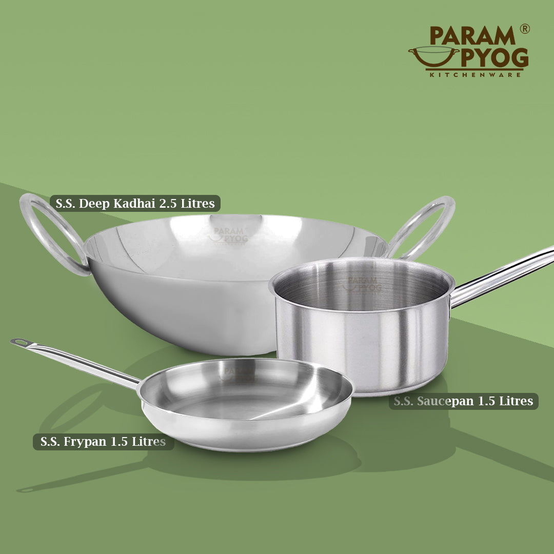 PARAM UPYOG is offering the exciting combo which includes Deep Kadhai, Induction Saucepan with Modern Handle and Induction Frypan with Modern Handle. So gift this to your Friends and Family super combo on special occasions and make them full of happiness. This combo is a must have addition to your vintage utensils collection. This will give better look and feel. An Essential Indian Cookware Set to prepare Foods like Curries, Daal, Biryani & Condiments for Authentic Indian Dining Experience. You can gift this beautiful looking combo of kadai, saucepan and fry pan with handles in festive seasons.
