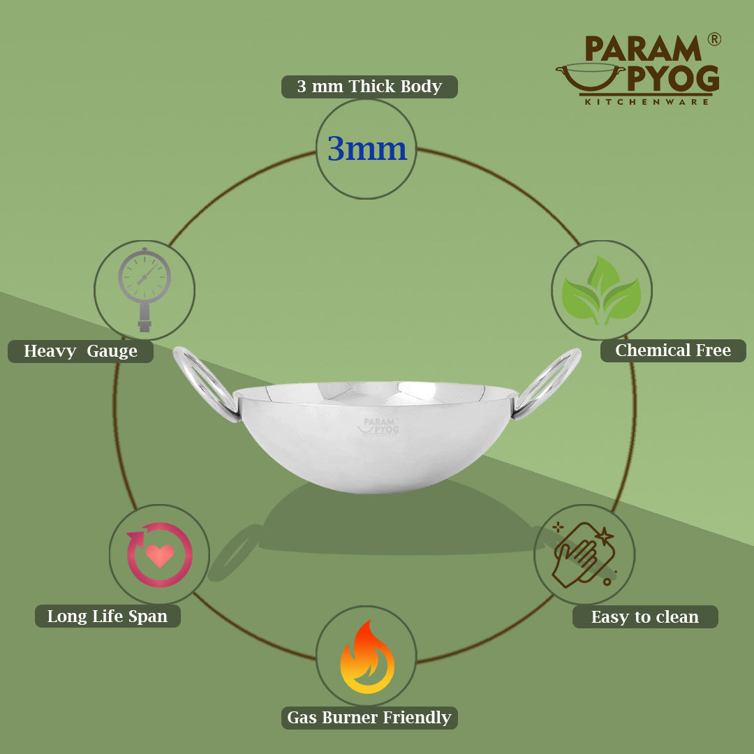 You can use this steel Kadai/kadai/fry/sause pan for cooking curry, bhaji, deep frying, roasting, sautéing, grilling, and broiling, shallow frying in a small quantity of oil for deep-frying in plenty of oil. They are good for water-based cooking like poaching and boiling.